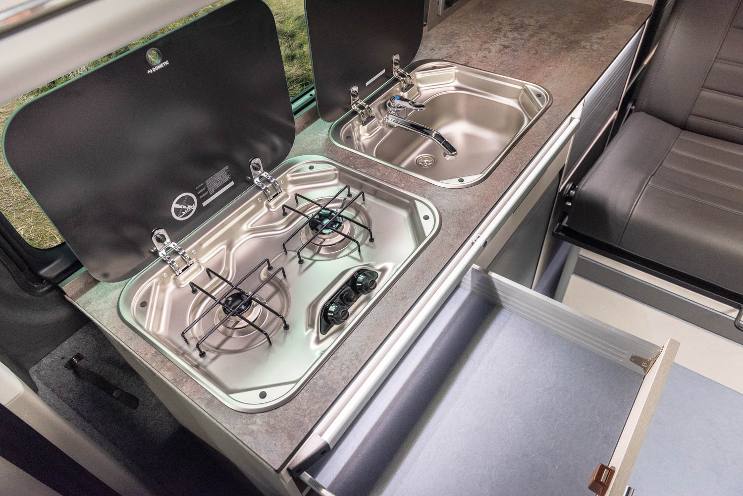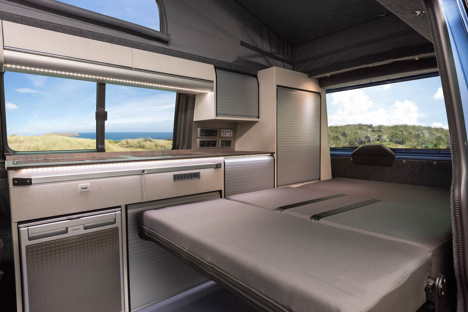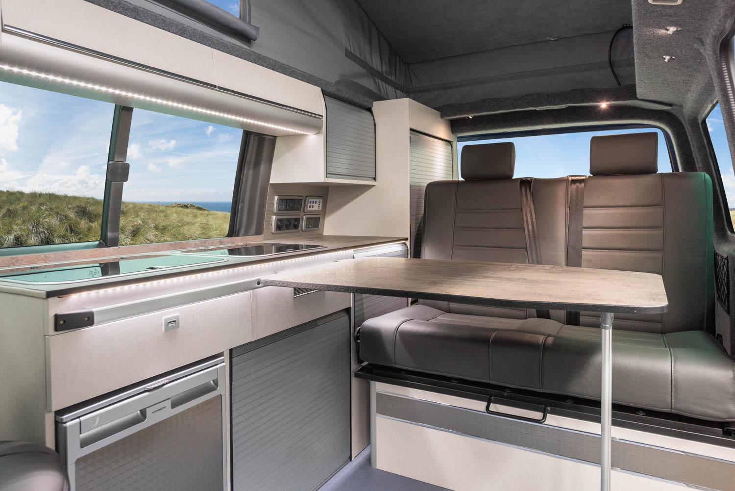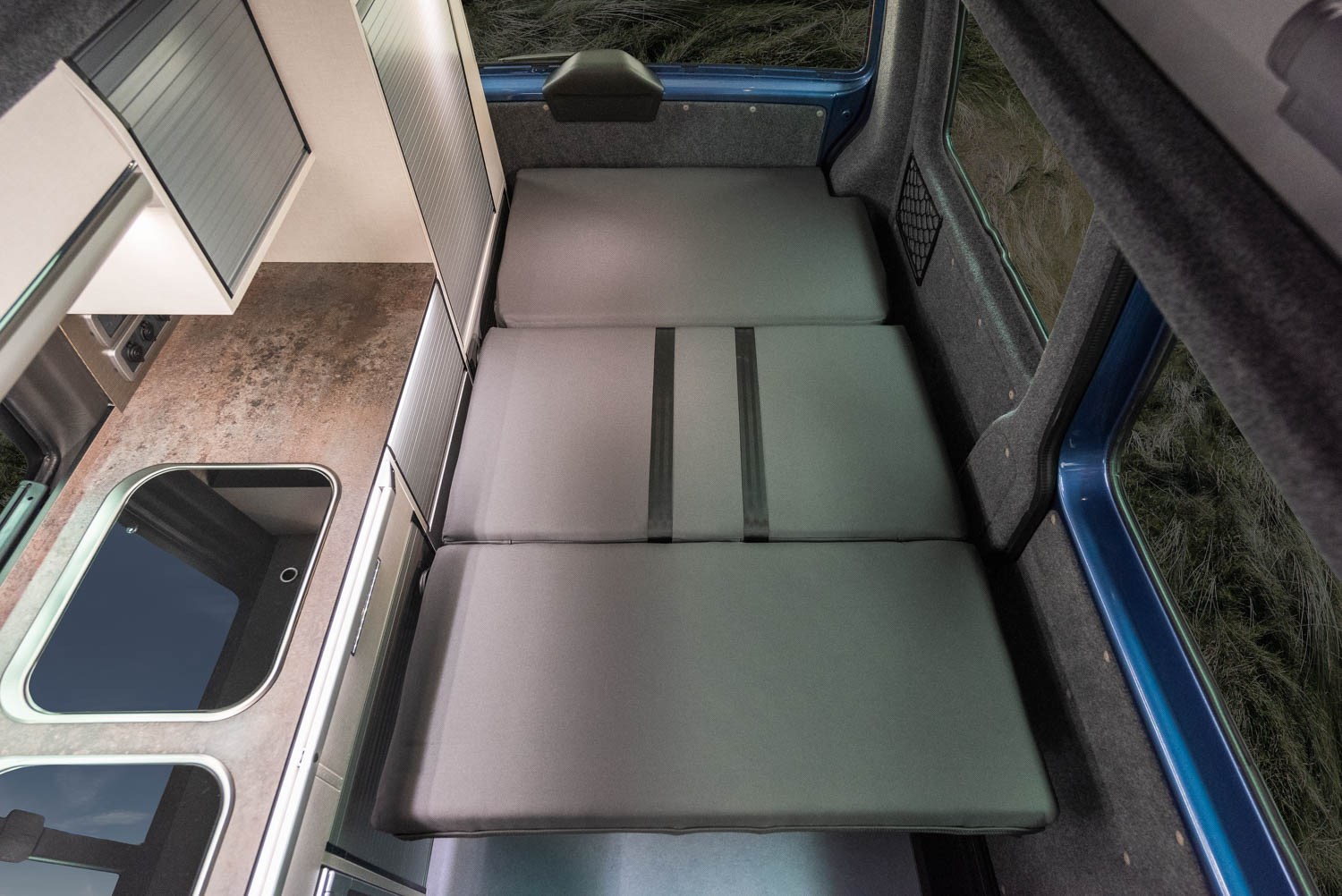 The ‘SWB Dreamaker’ camper van conversion is a culmination of 12 years of refinement to reach what we view is the perfect balance of maximum storage, free space and bed space. The Dreamaker is based on the traditional camper van layout.