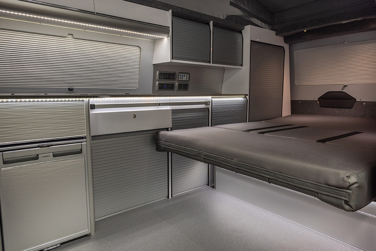 The LWB Freerunner campervan - maximum people carrying, good sleeping comfort with full camper facilities.