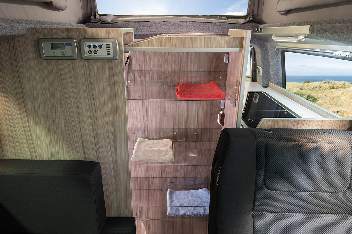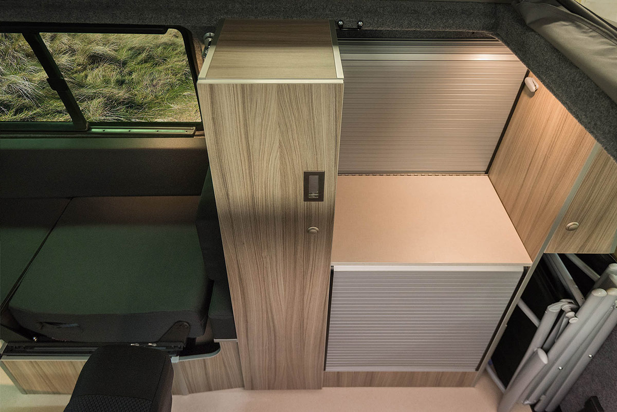 ➤ Reimo superflat high lift rear open elevating roof featuring enlarged opening rear window and midge proof netting throughout and Xtreme isolating insulation layer in core of roof.